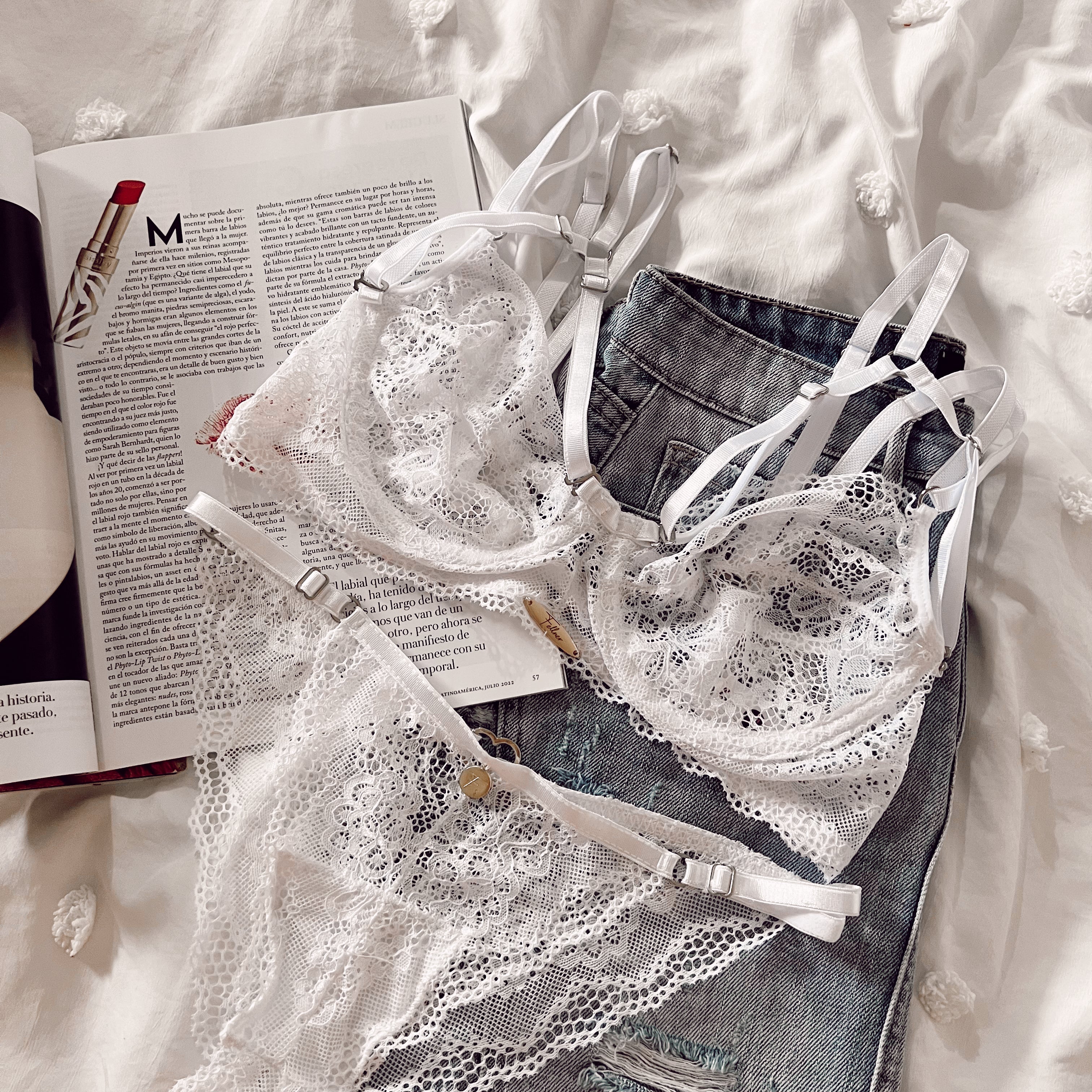 SET ELABORADO EN ENCAJE, CON VARILLA EN EL BRA PARA UN MEJOR SOPORTE INCLUYE ACCESORIOS QUE PUEDES QUITAR O INCLUIR A LA HORA DE USAR EL SET.